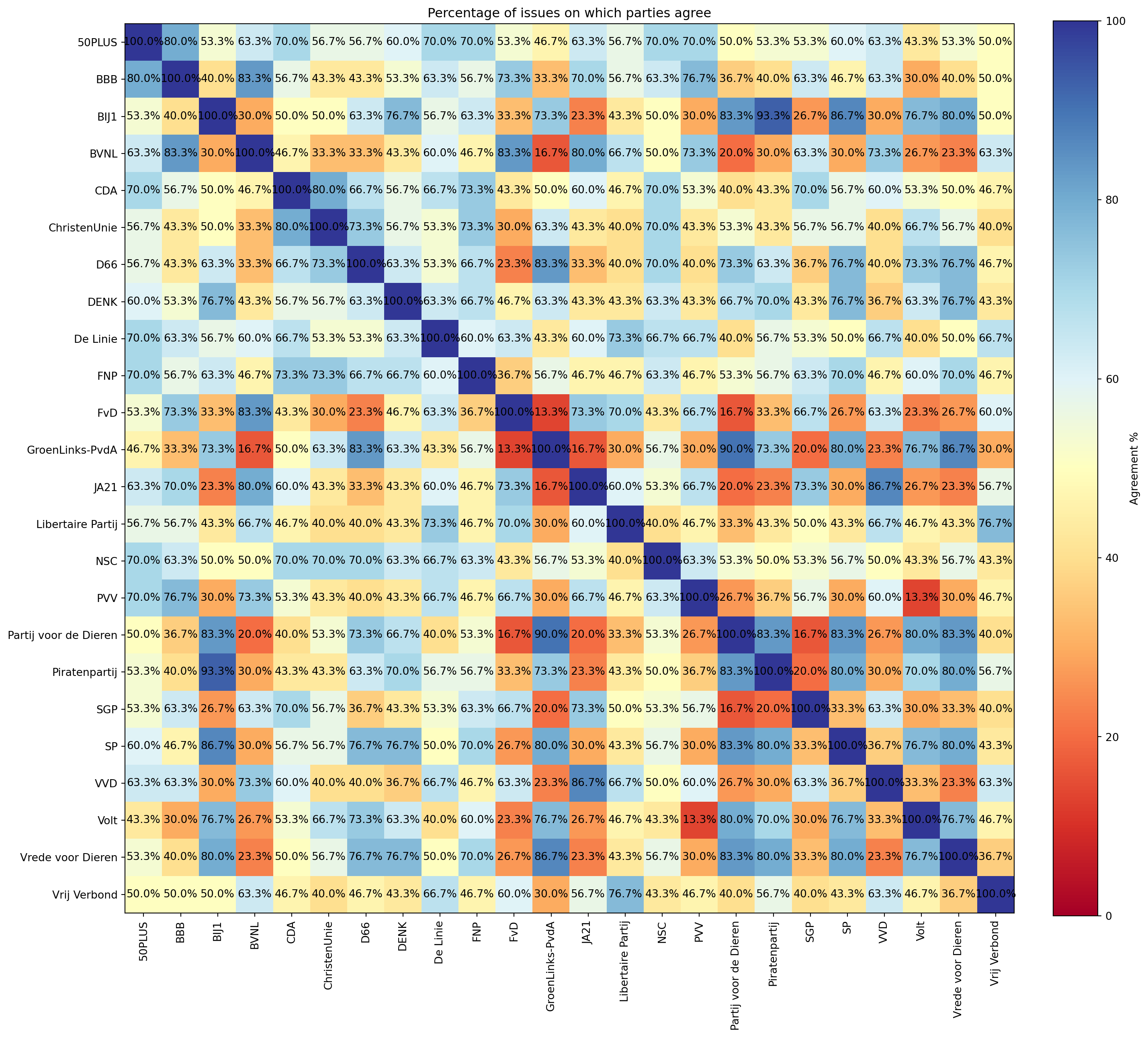 Another thing to keep in mind is that when parties supply their positions to the Stemwijzer website, they likely do so strategically by aligning with what they think most voters would prefer. They’re trying to rake in votes and might misrepresent their actual stance on certain issues. Politicians can be manipulative and dishonest. Shocking, I know.
